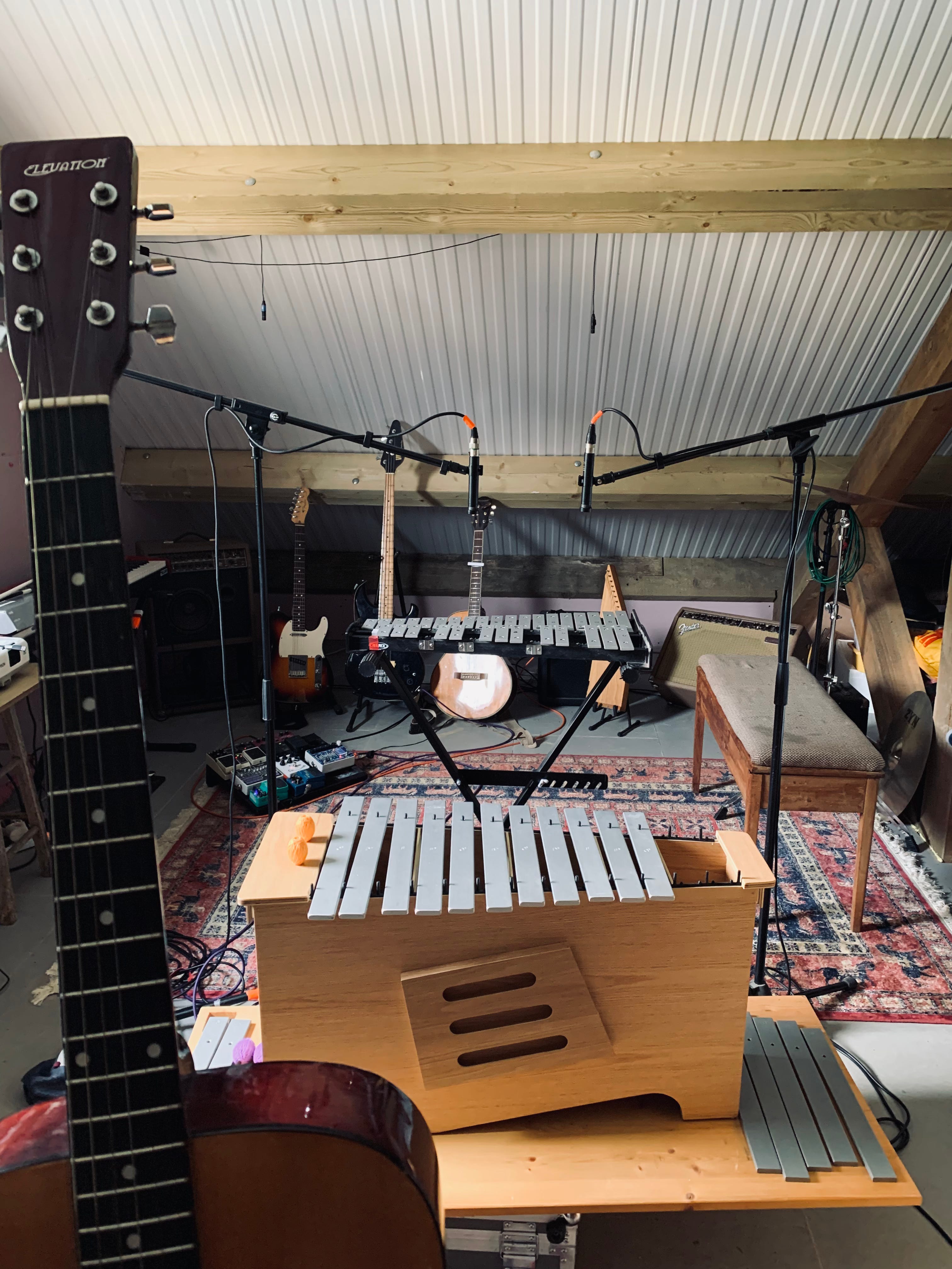 Following the addition of tuned percussion, I wanted to revisit distorted bass sounds to bring depth of emotion to the piece. After a few tweaks on the pedal board (pictured top), I found the right sound and noodled about for a while alongside the tune before landing on the chord progressions in the audio draft above. I’ve got further string and higher glockenspiel arrangements I’d like to add, as well as arranging the timing and cue of the instruments. Upon listening, I think the wind is the key sound that I’d like to focus on, which means I will head back to the Mosses to record the wind and how it acts on the grasses and trees there. It’s exciting to be back into the music-making phase for Mosses.