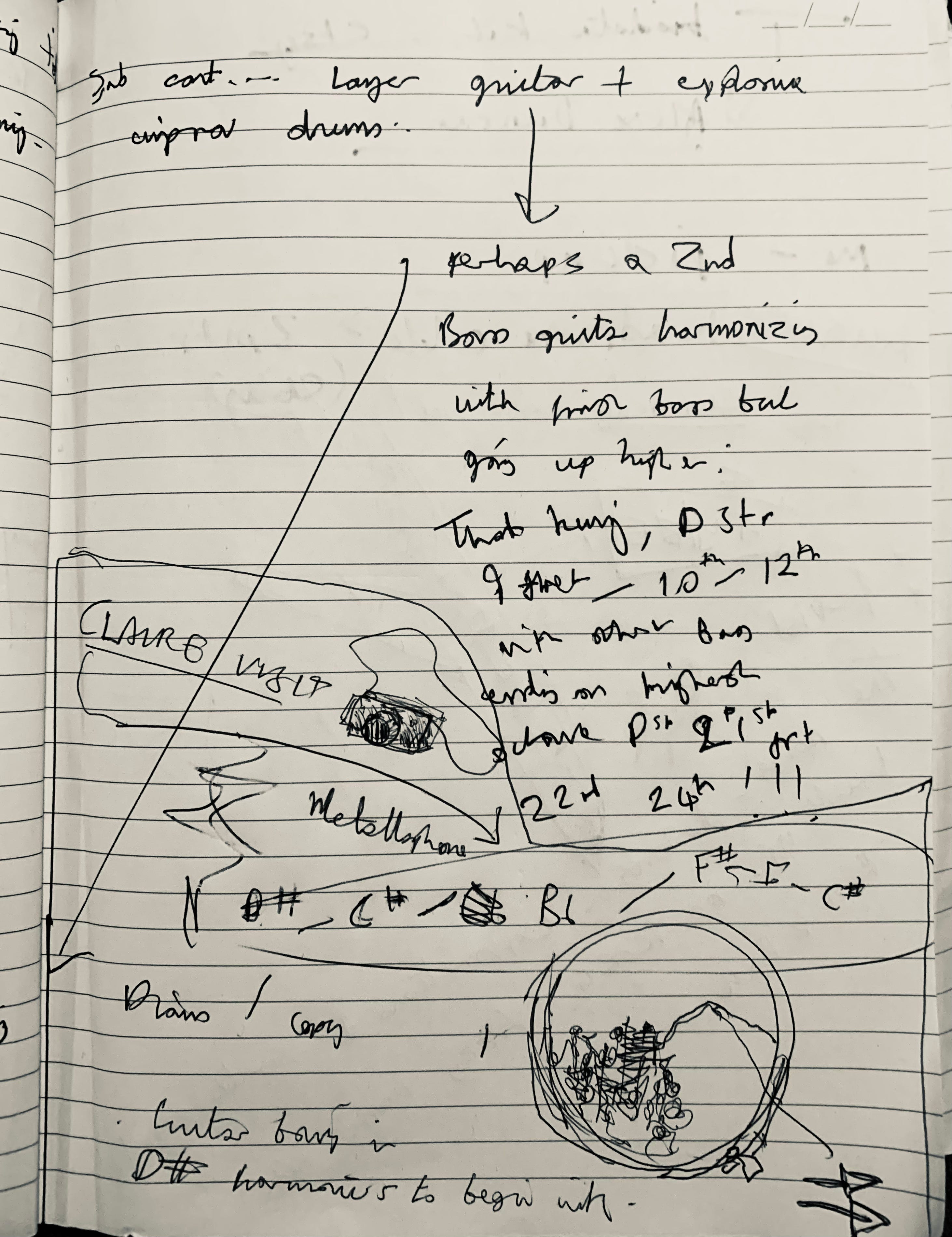 Breakthrough Bass moment after setting the right distortion and noodling with riffs, I landed on this finger-picked chord progression, which is here to stay - 19th August 2025.